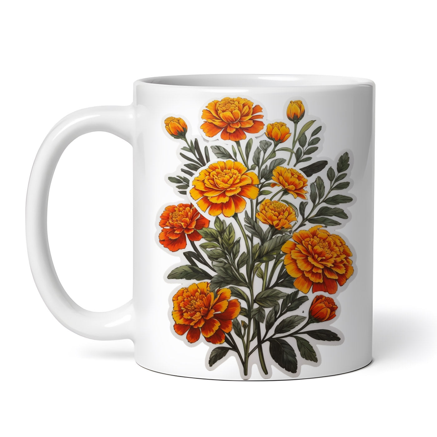 Cana ceramica, Flori de craite cu boboci, NO8521, 330 ml, Multicolor