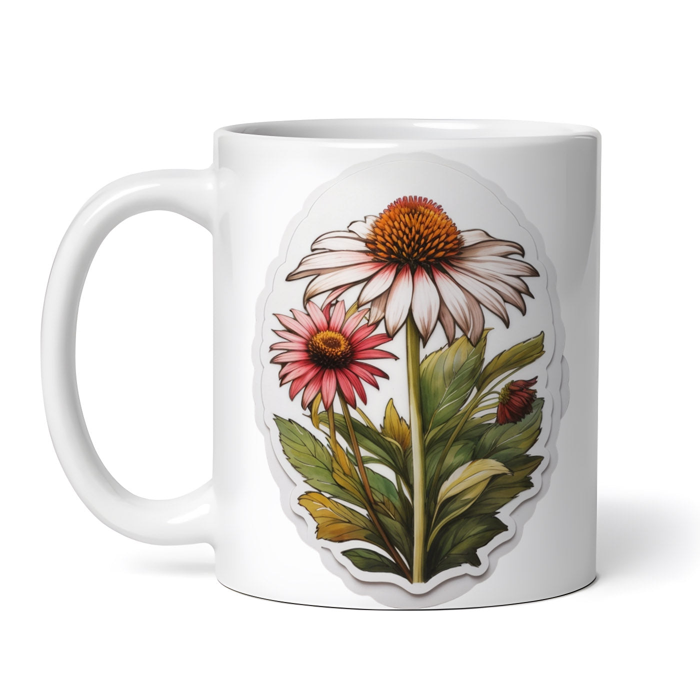 Cana ceramica, Flori de echinacea, NO8122, 330 ml, Multicolor