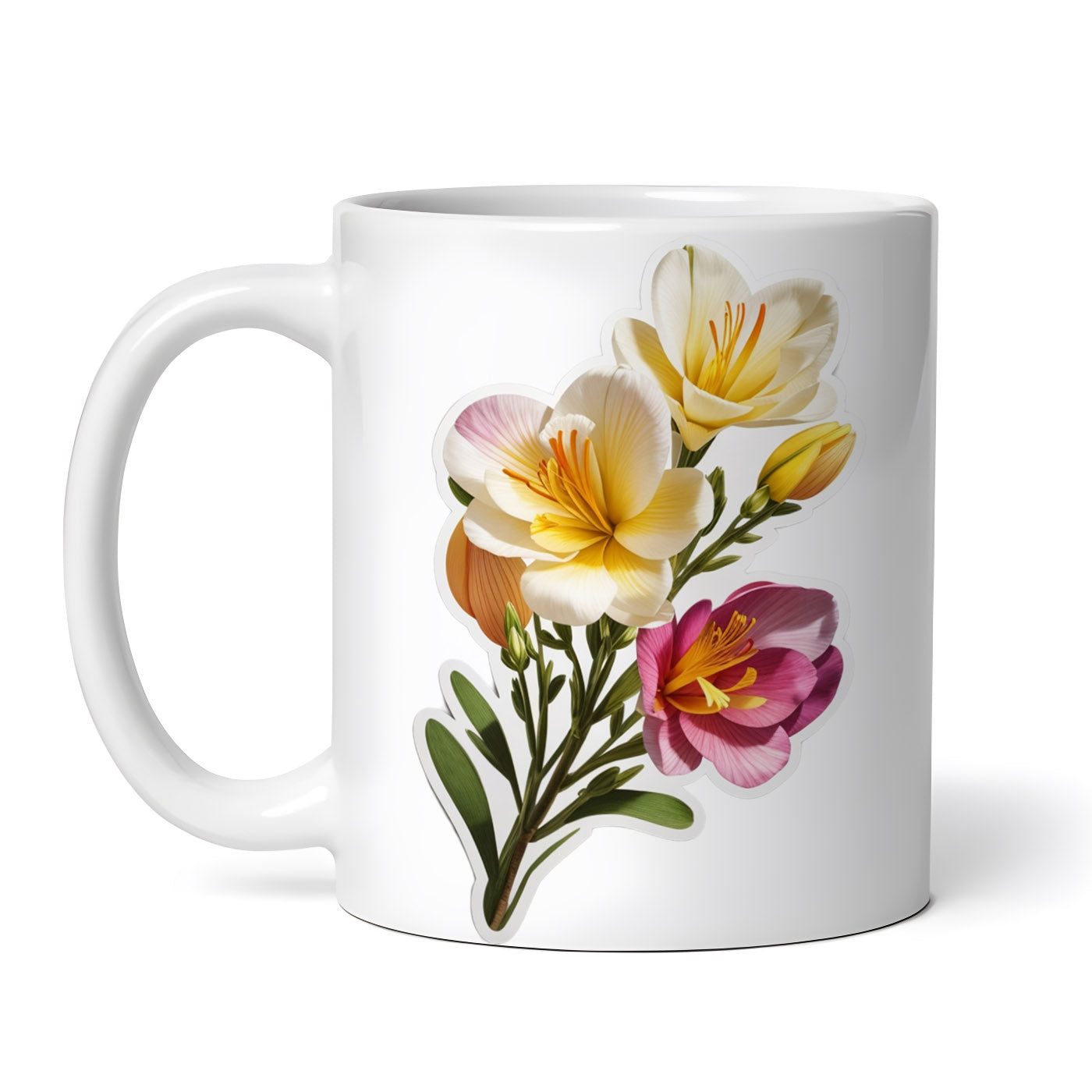 Cana ceramica, Flori de Frezia cu boboci, NO8193, 330 ml, Multicolor