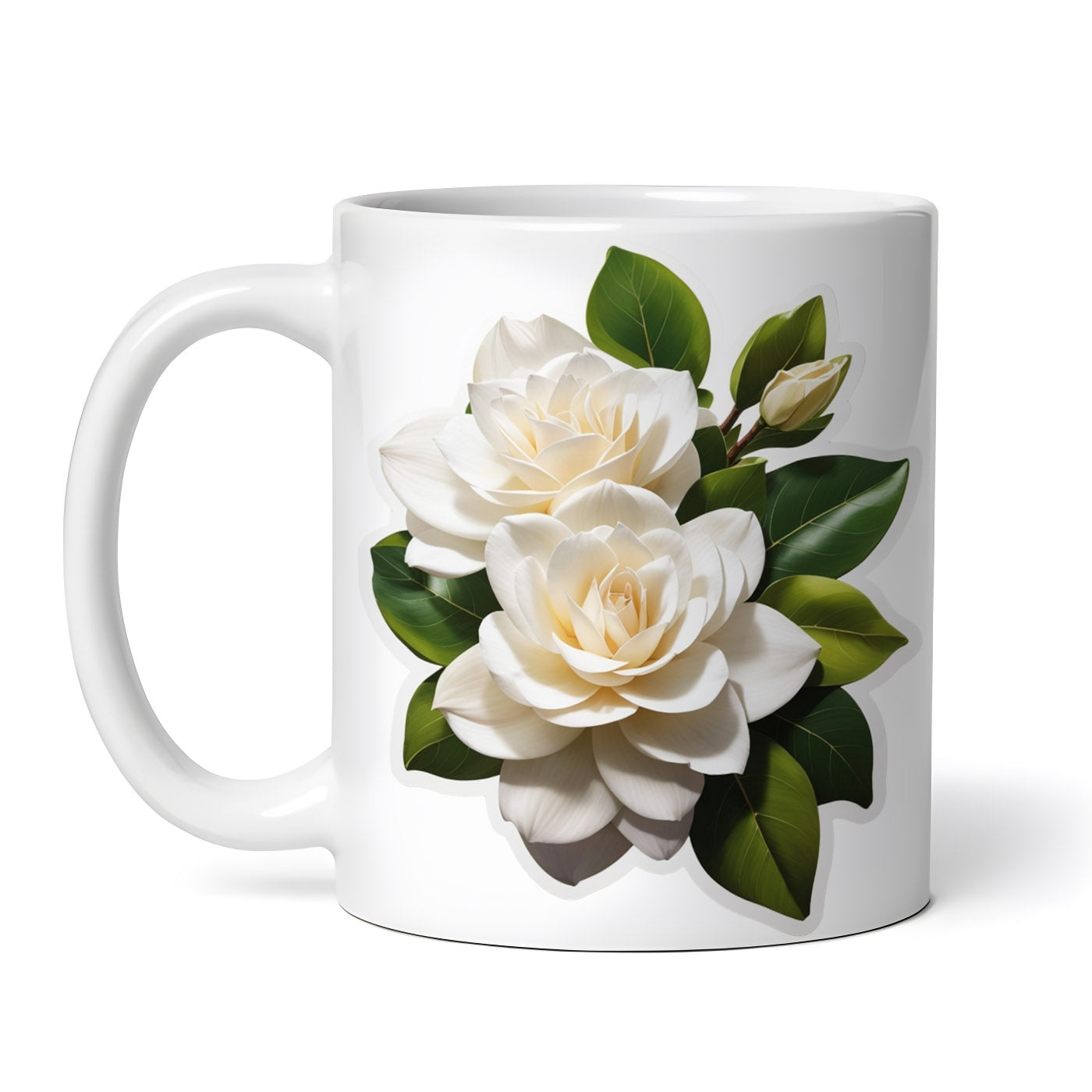 Cana ceramica, Flori de gardenia cu boboci, NO8211, 330 ml, Multicolor