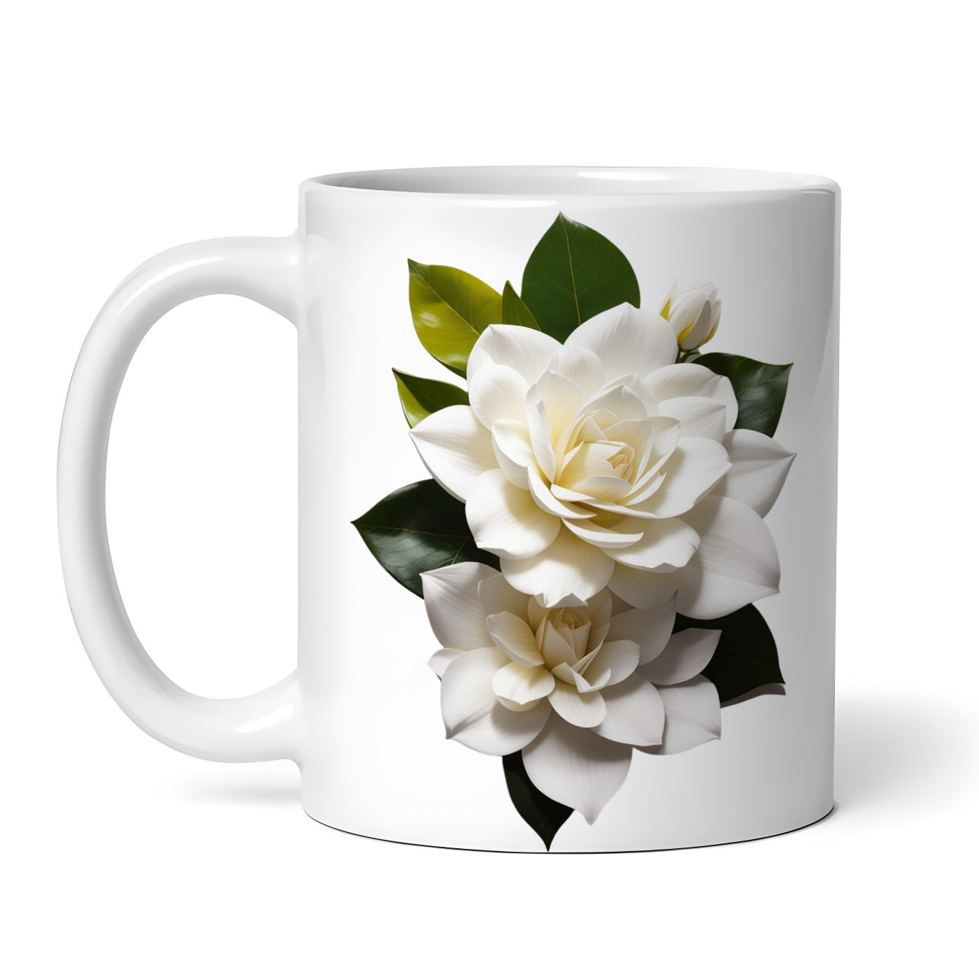 Cana ceramica, Flori de gardenia, NO8210, 330 ml, Multicolor