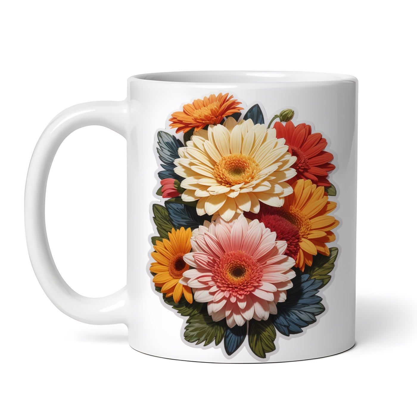Cana ceramica, Flori de gerbera, NO8225, 330 ml, Multicolor