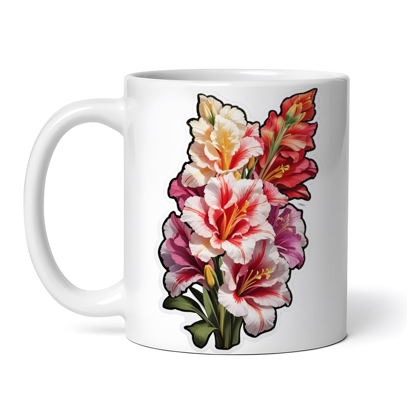 Cana ceramica, Flori de gladiole, NO8257, 330 ml, Multicolor