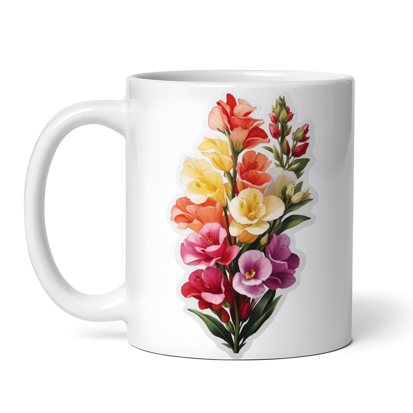 Cana ceramica, Flori de Gura leului, NO8907, 330 ml, Multicolor