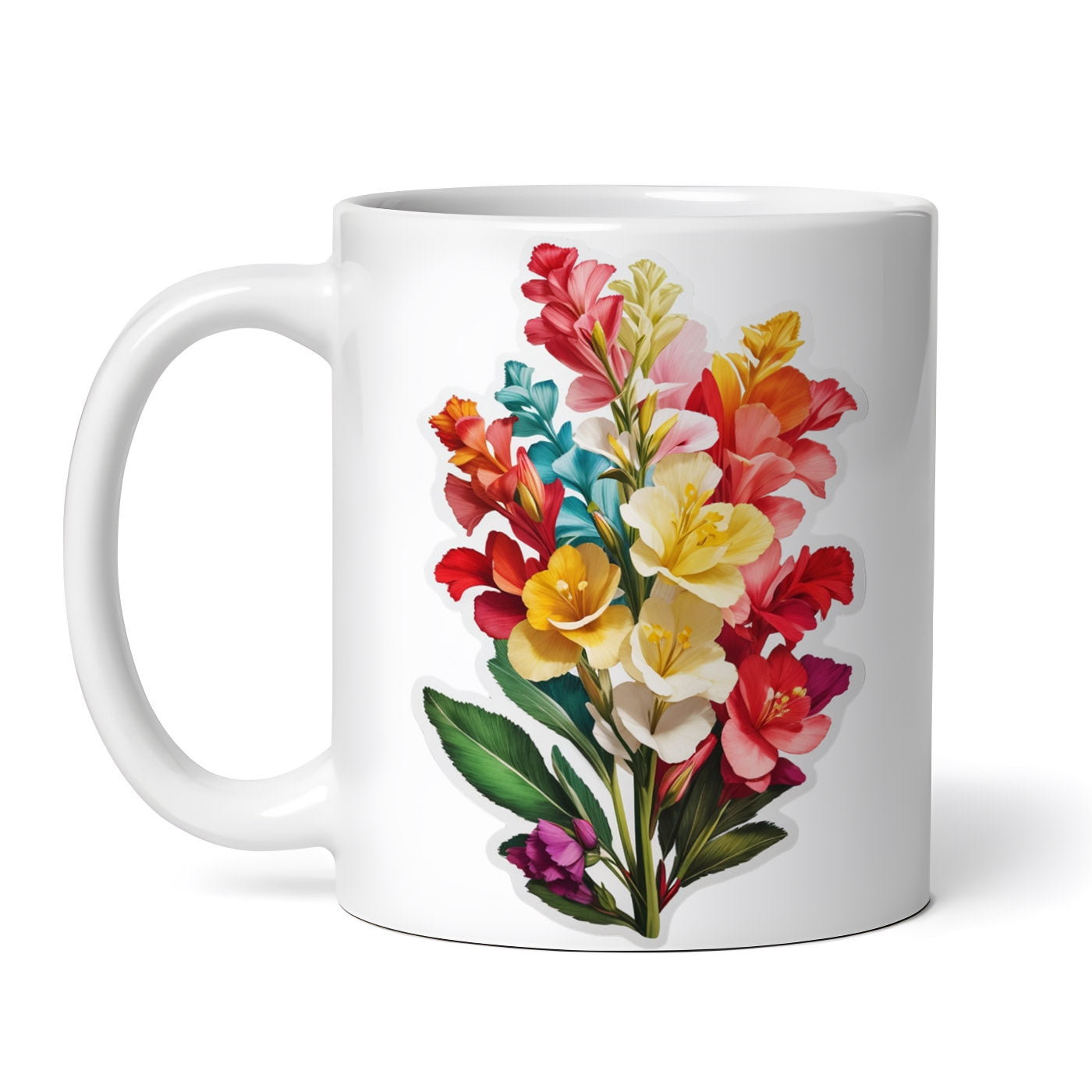 Cana ceramica, Flori de Gura leului, NO8908, 330 ml, Multicolor