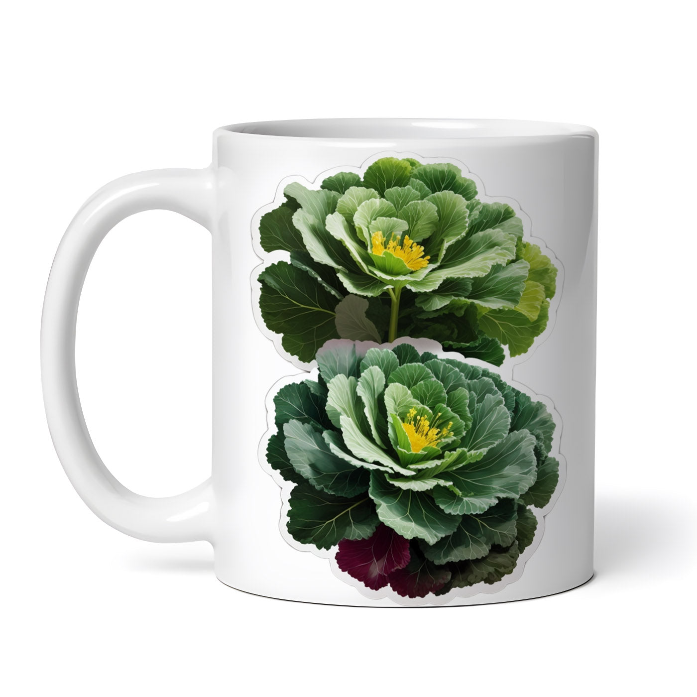 Cana ceramica, Flori de kale, NO8389, 330 ml, Multicolor