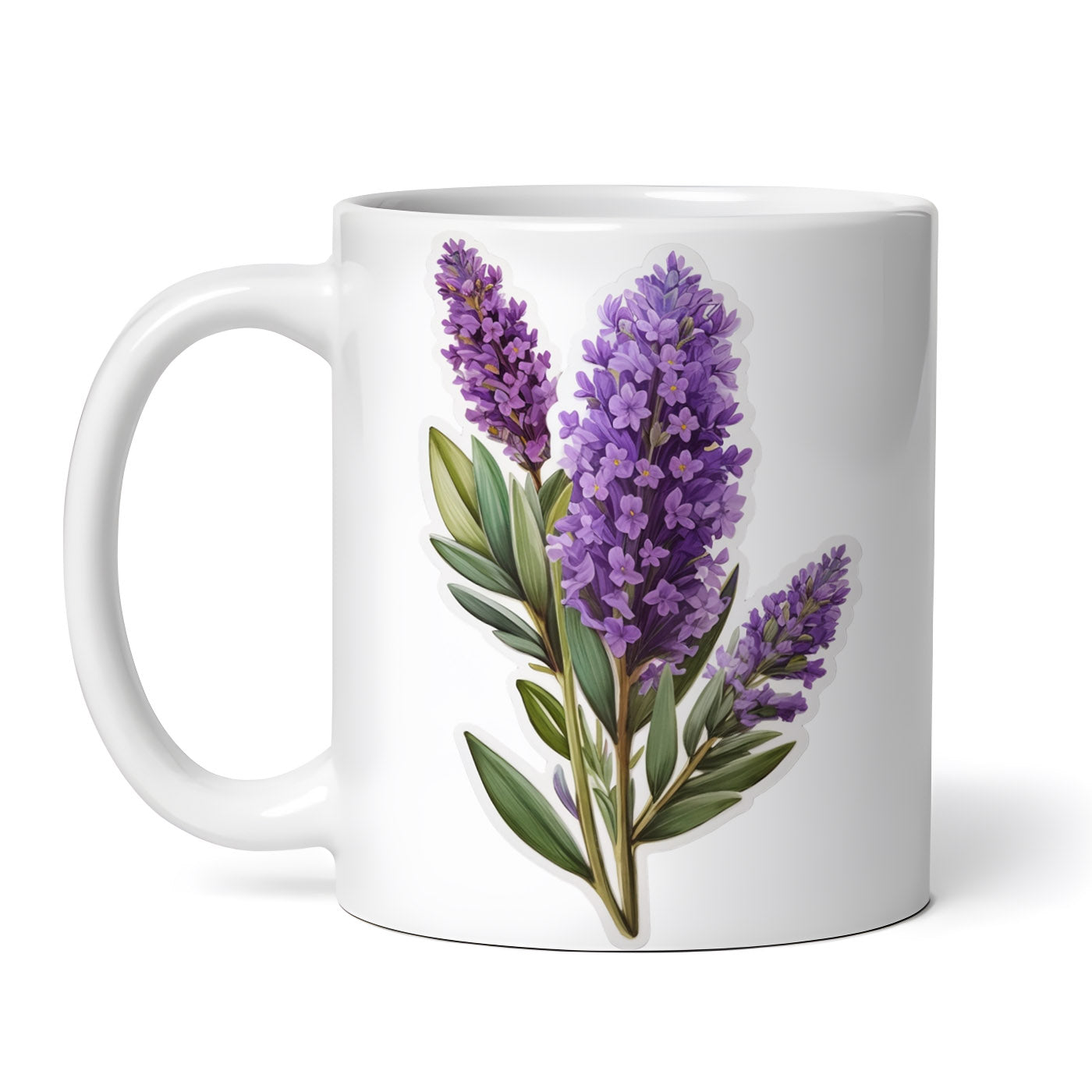 Cana ceramica, Flori de lavanda, NO8419, 330 ml, Multicolor