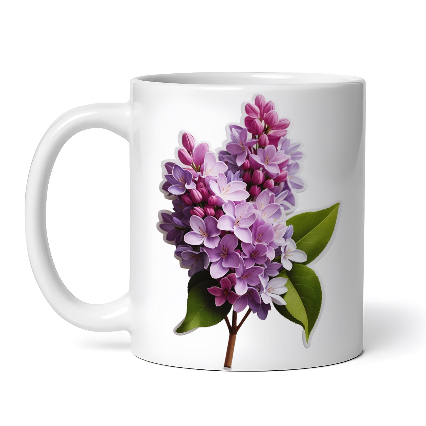 Cana ceramica, Flori de liliac, NO8446, 330 ml, Multicolor