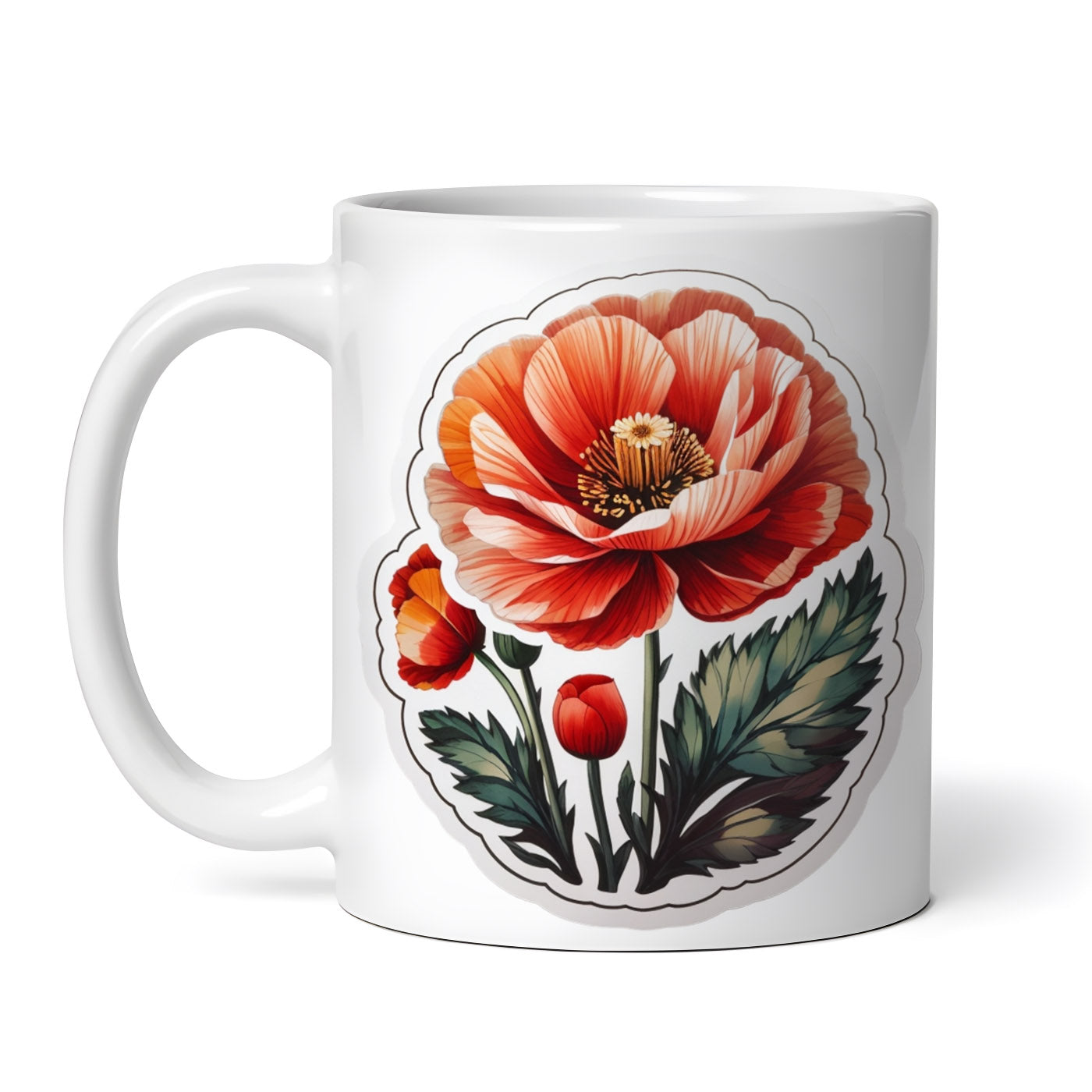 Cana ceramica, Flori de mac, NO8753, 330 ml, Multicolor
