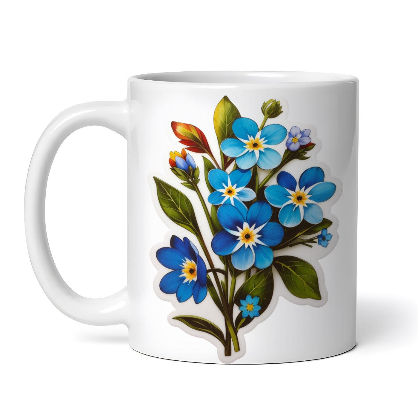 Cana ceramica, Flori de Nu ma uita cu boboci, NO8177, 330 ml, Multicolor