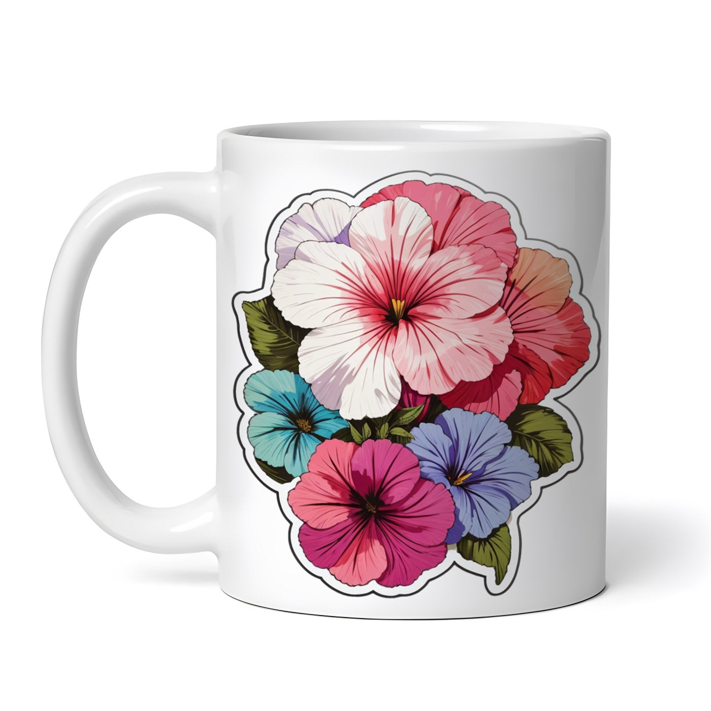 Cana ceramica, Flori de petunii, NO8702, 330 ml, Multicolor