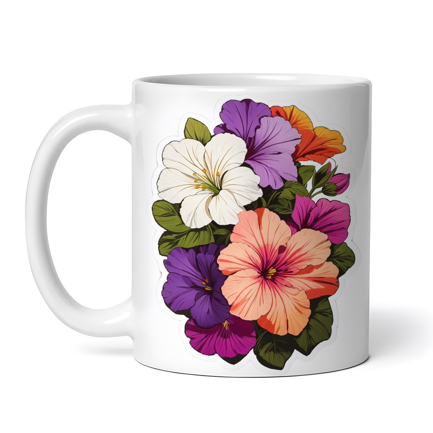 Cana ceramica, Flori de petunii, NO8704, 330 ml, Multicolor