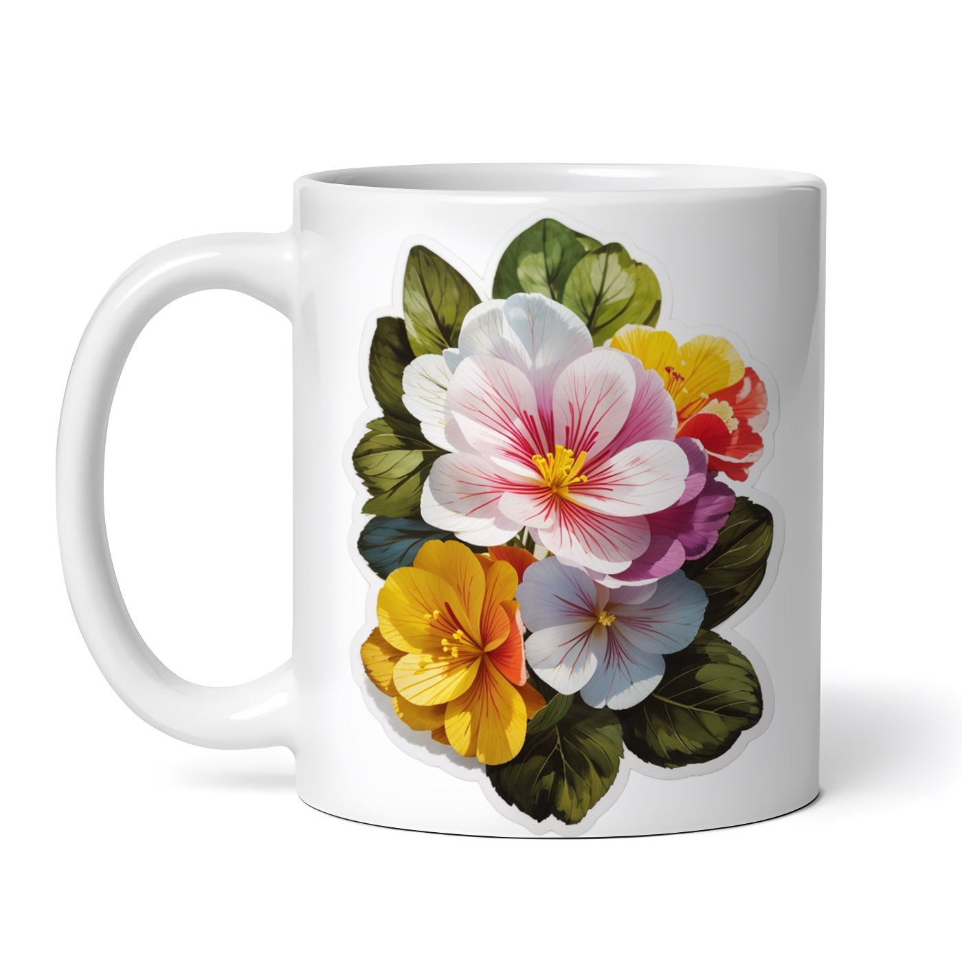 Cana ceramica, Flori de primula, NO8773, 330 ml, Multicolor