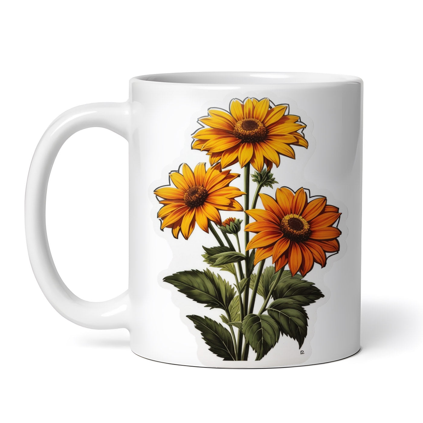 Cana ceramica, Flori de Rudbeckia, NO8817, 330 ml, Multicolor