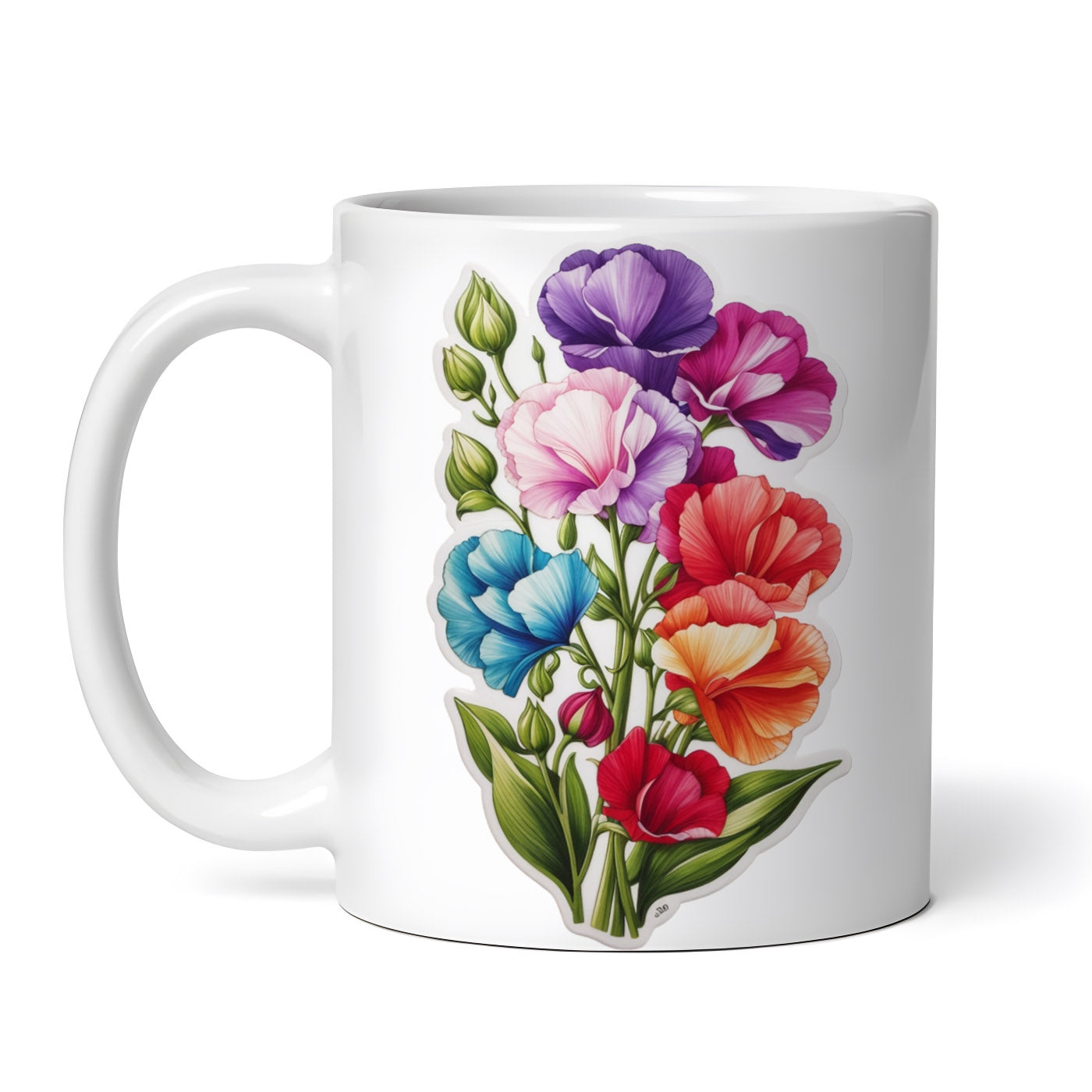 Cana ceramica, Flori de Sweet Pea, NO8941, 330 ml, Multicolor