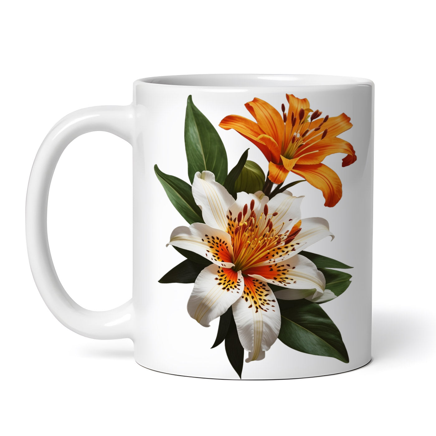 Cana ceramica, Flori de Tiger lily, NO8968, 330 ml, Multicolor