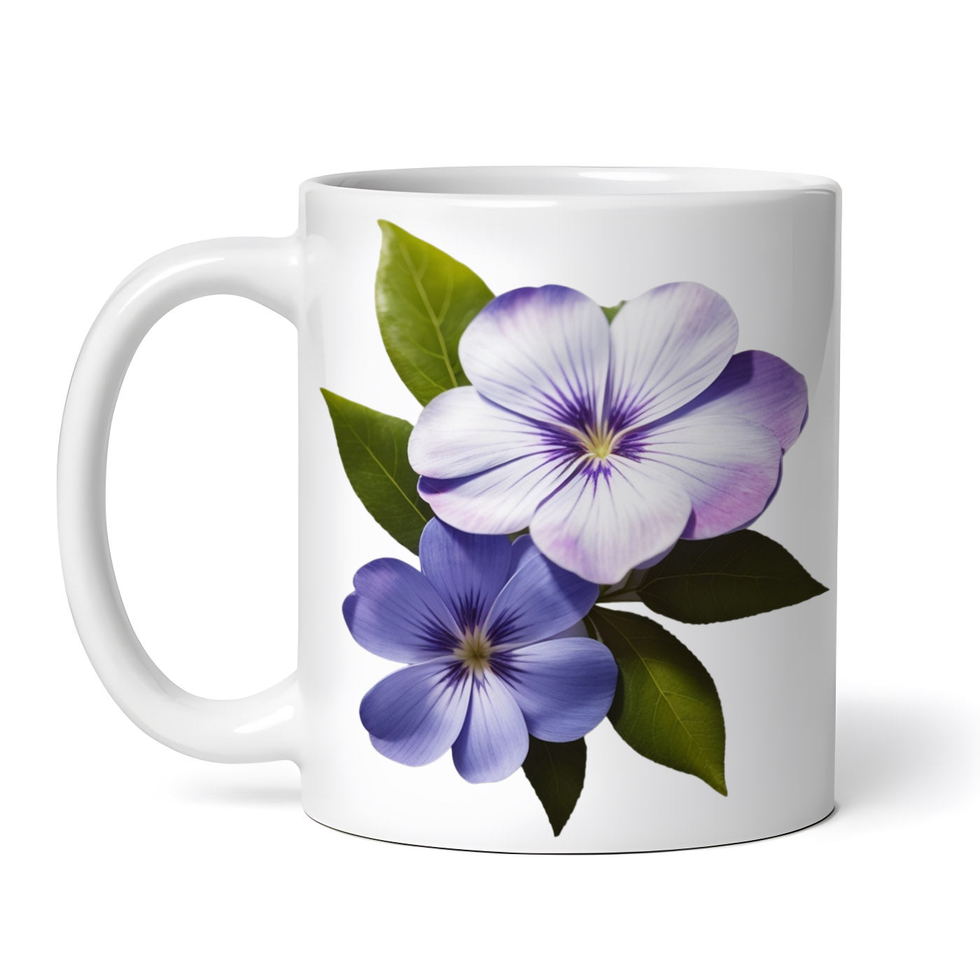 Cana ceramica, Flori de vinca, NO8695, 330 ml, Multicolor