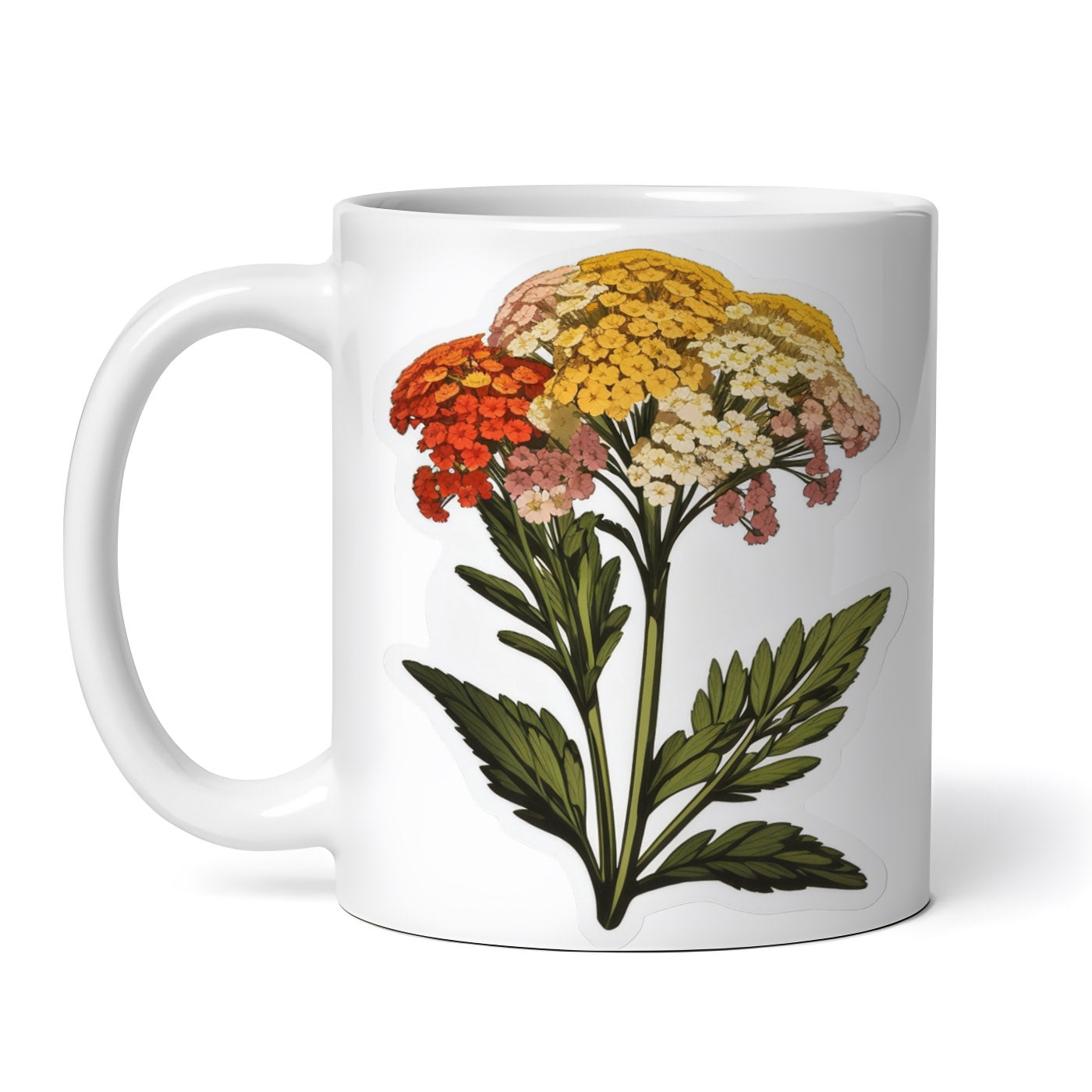Cana ceramica, Flori de yarrow, NO9068, 330 ml, Multicolor