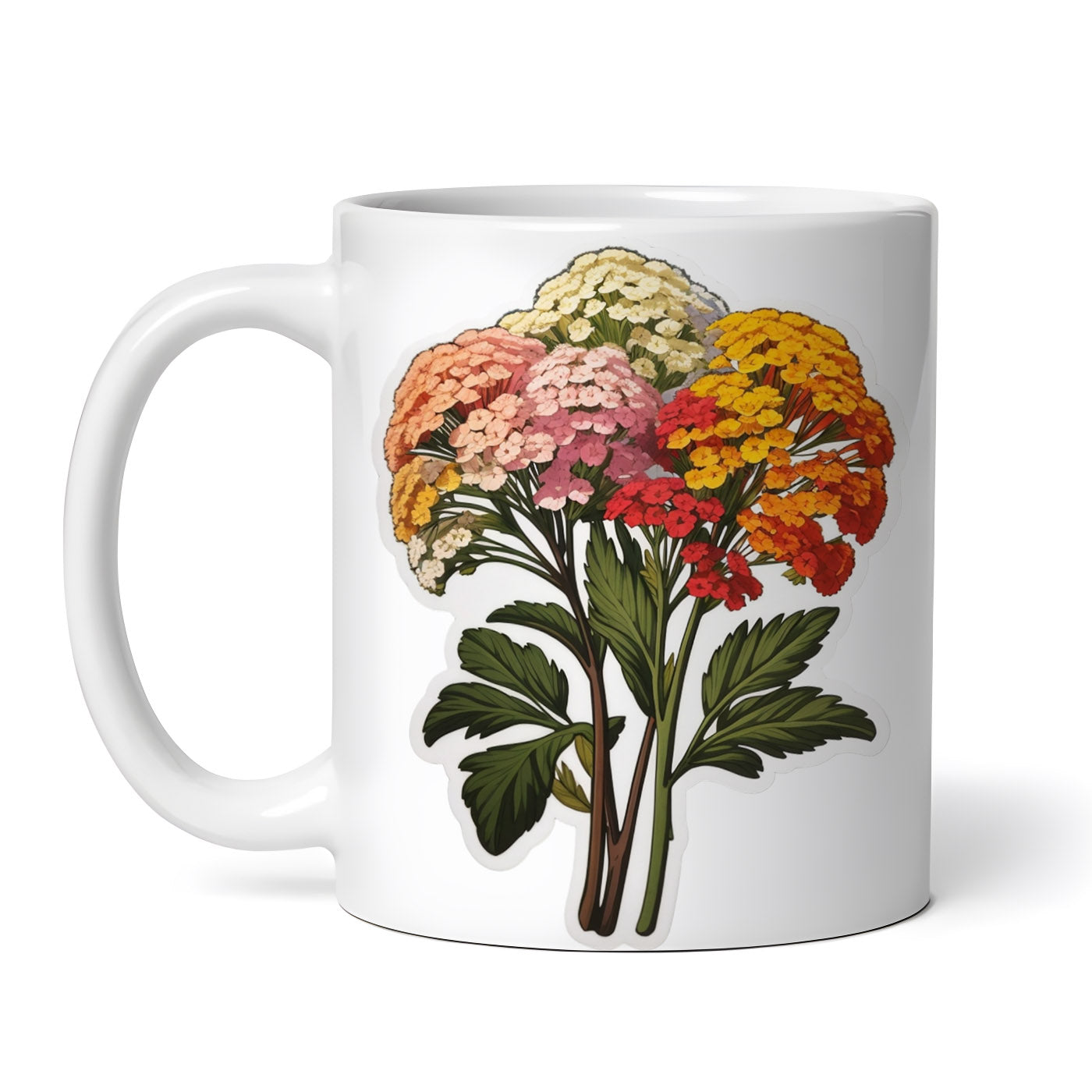 Cana ceramica, Flori de yarrow, NO9071, 330 ml, Multicolor