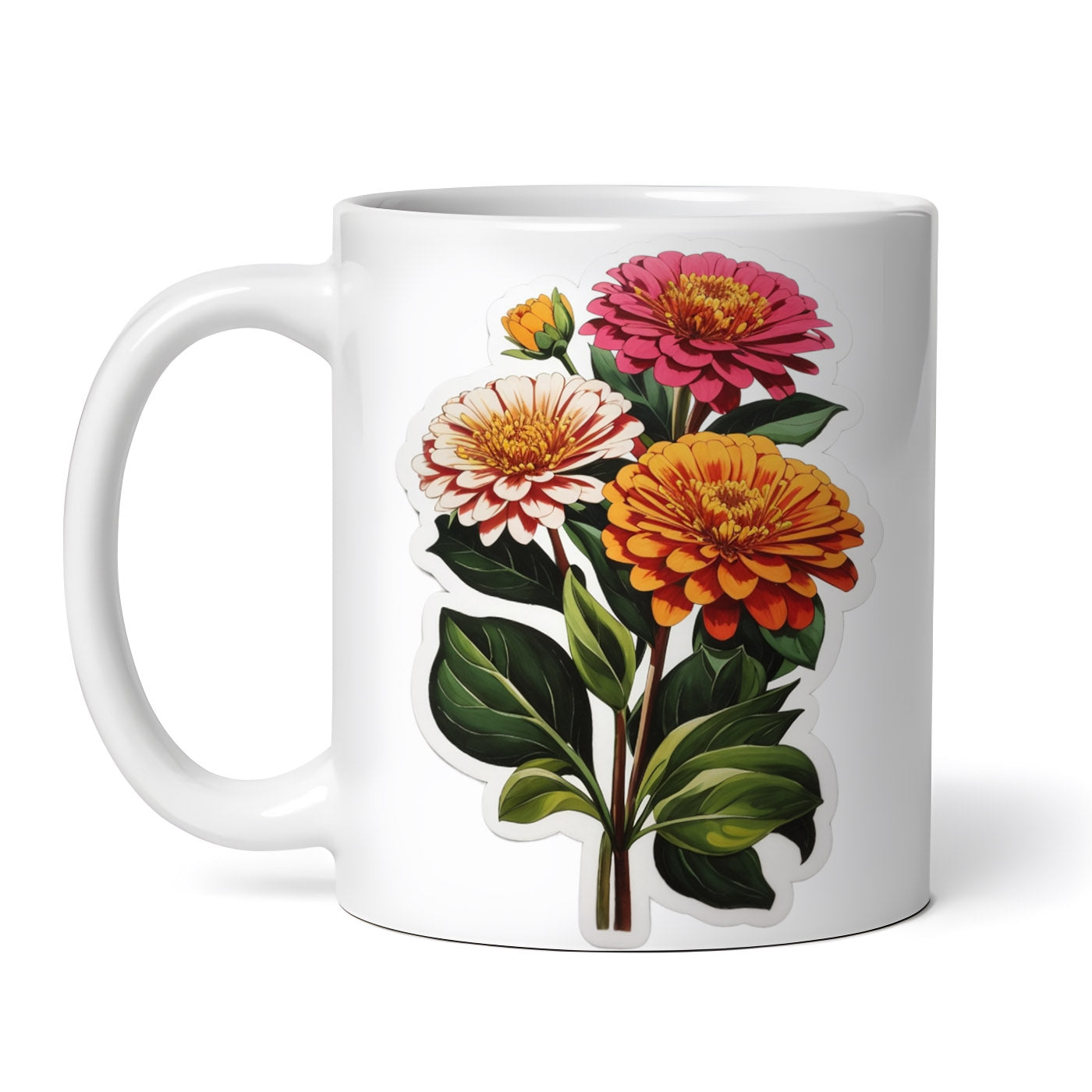 Cana ceramica, Flori de zinnia, NO9099, 330 ml, Multicolor