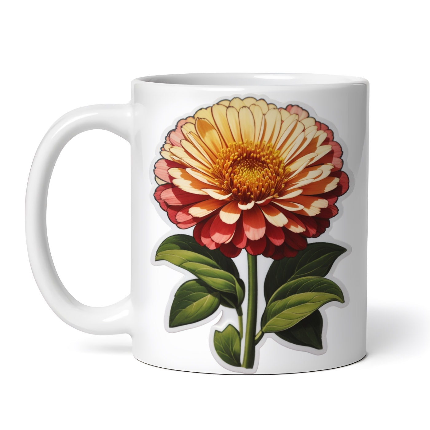 Cana ceramica, Flori de zinnia, NO9100, 330 ml, Multicolor