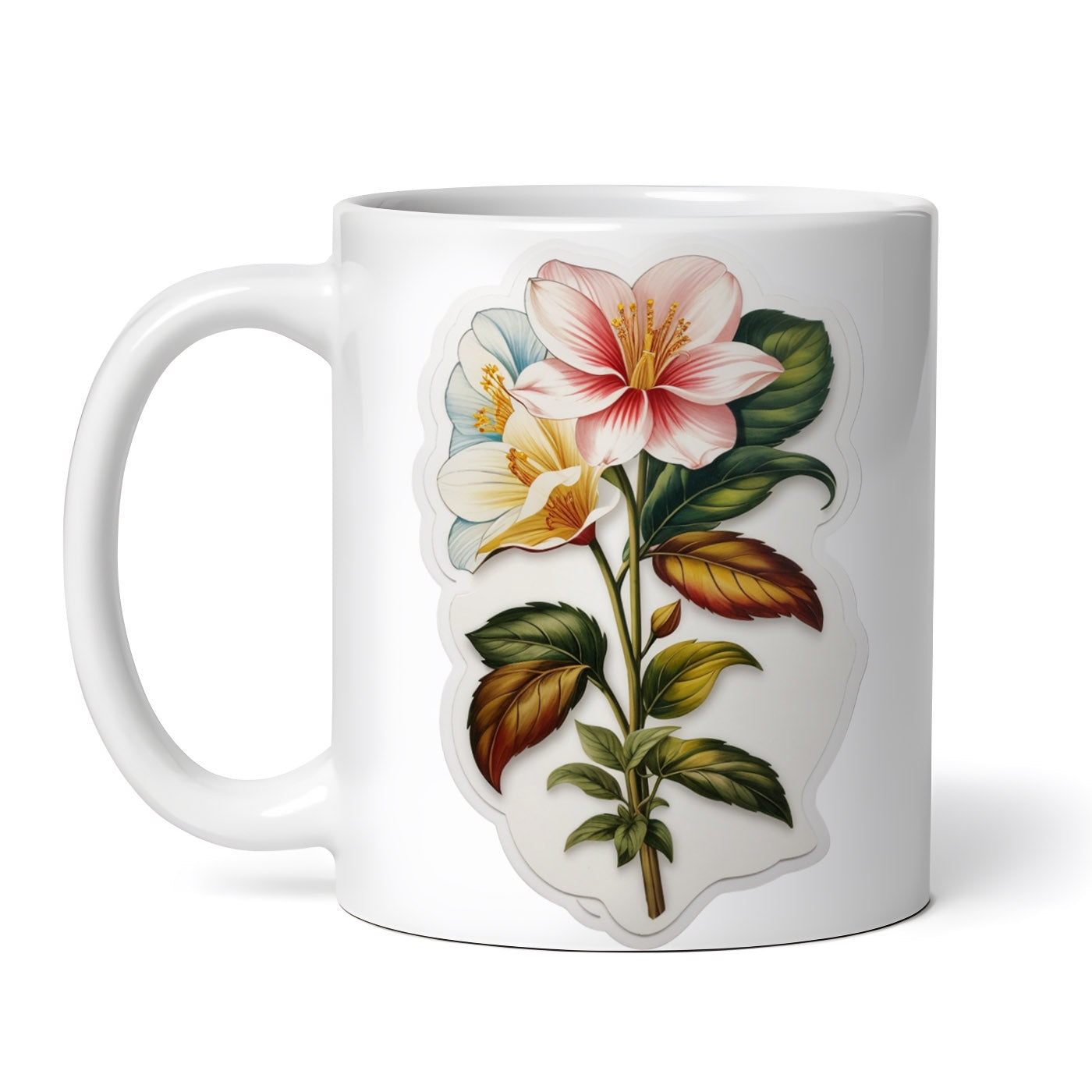 Cana ceramica, Flori Papucul lui Darwin cu frunze, NO8080, 330 ml, Multicolor
