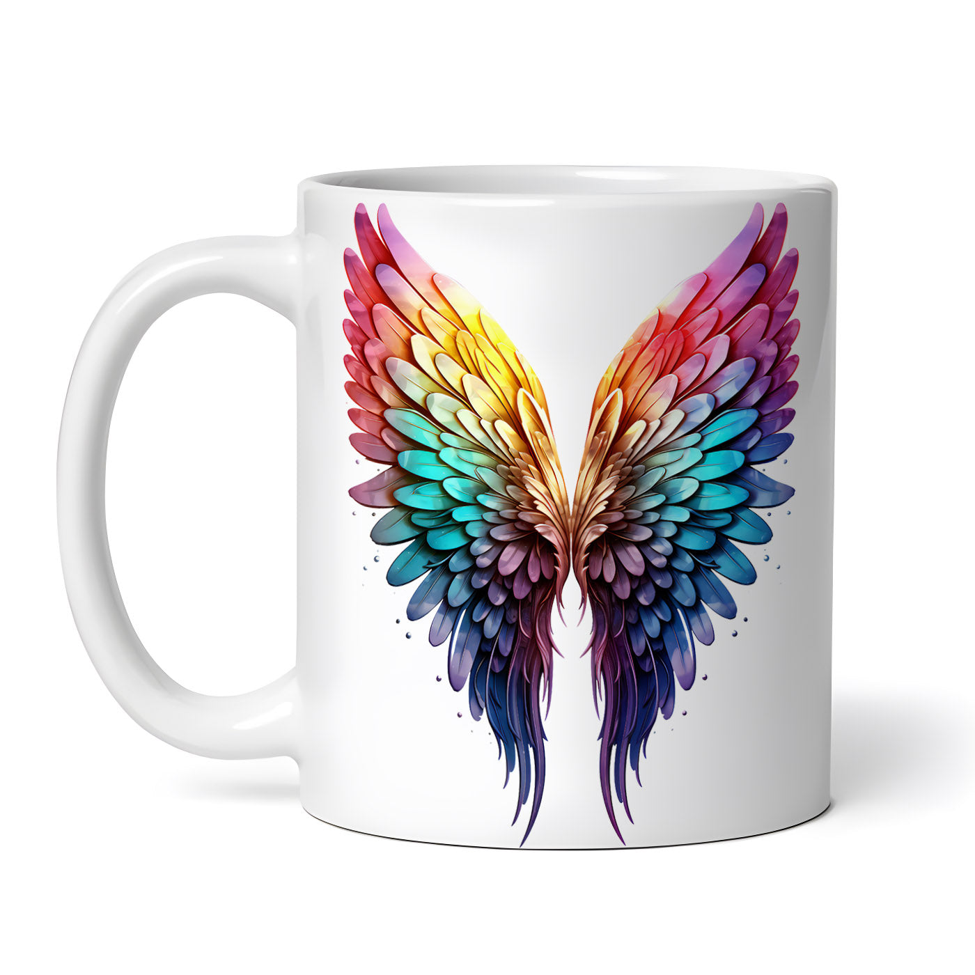 Cana ceramica, Fluture curcubeu Diamant, NO3994, 330 ml, Multicolor