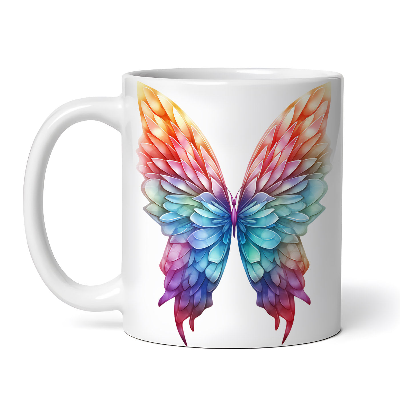 Cana ceramica, Fluture curcubeu Matasea, NO5939, 330 ml, Multicolor