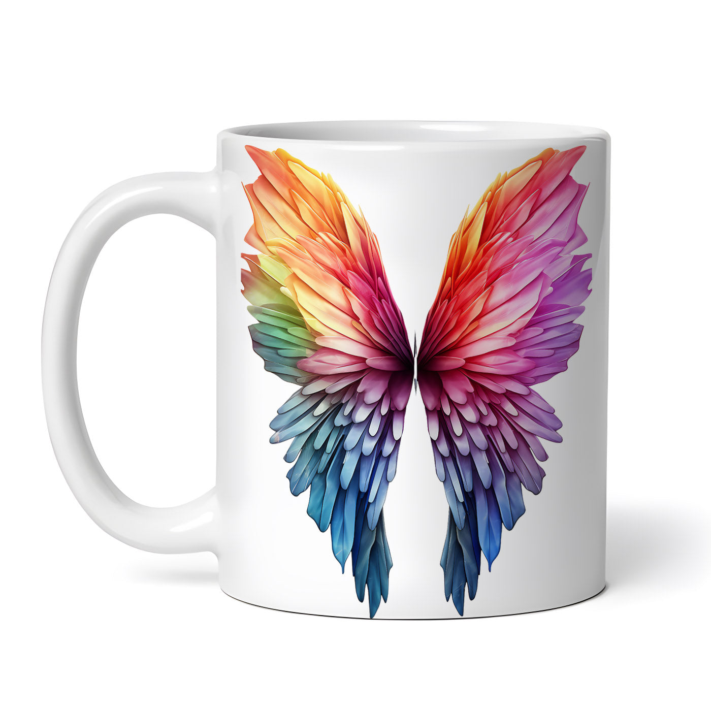 Cana ceramica, Fluture curcubeu Origami, NO2937, 330 ml, Multicolor