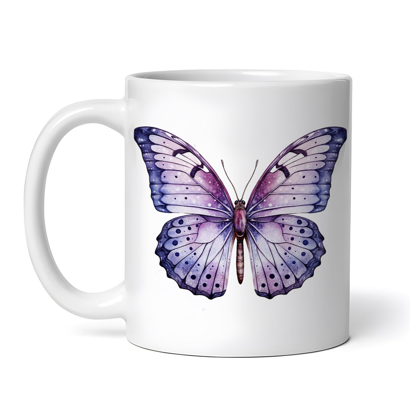 Cana ceramica, Fluture mov, NO1580, 330 ml, Multicolor