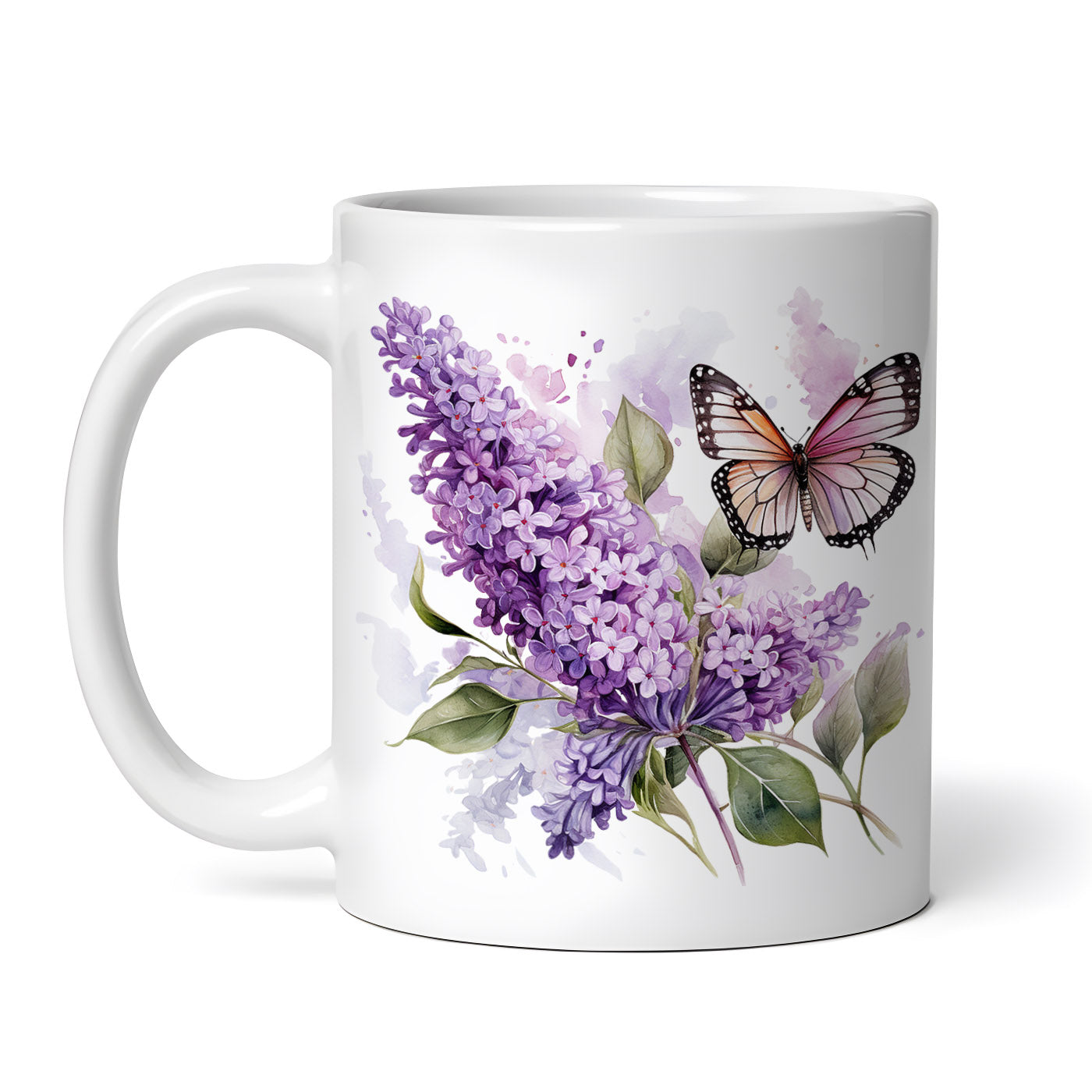 Cana ceramica, Fluture pe liliac inflorit, NO1721, 330 ml, Multicolor