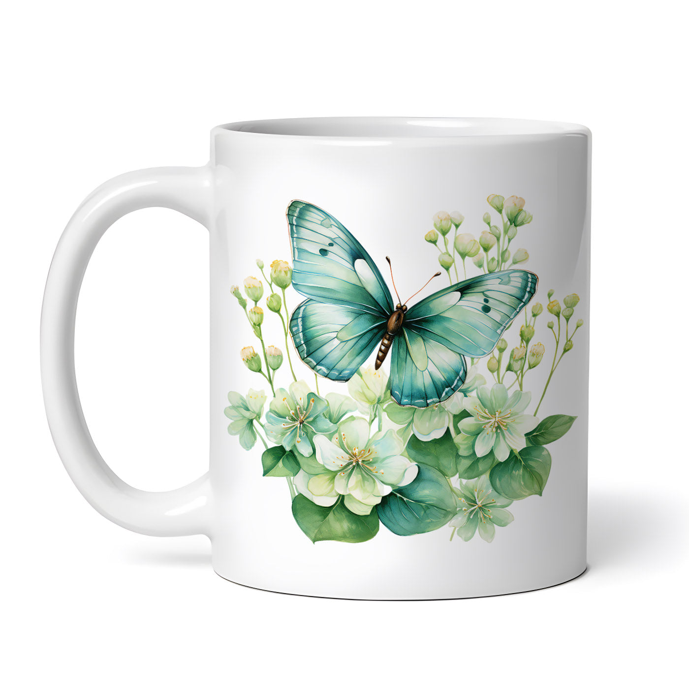 Cana ceramica, Fluture verde in flori, NO4913, 330 ml, Multicolor