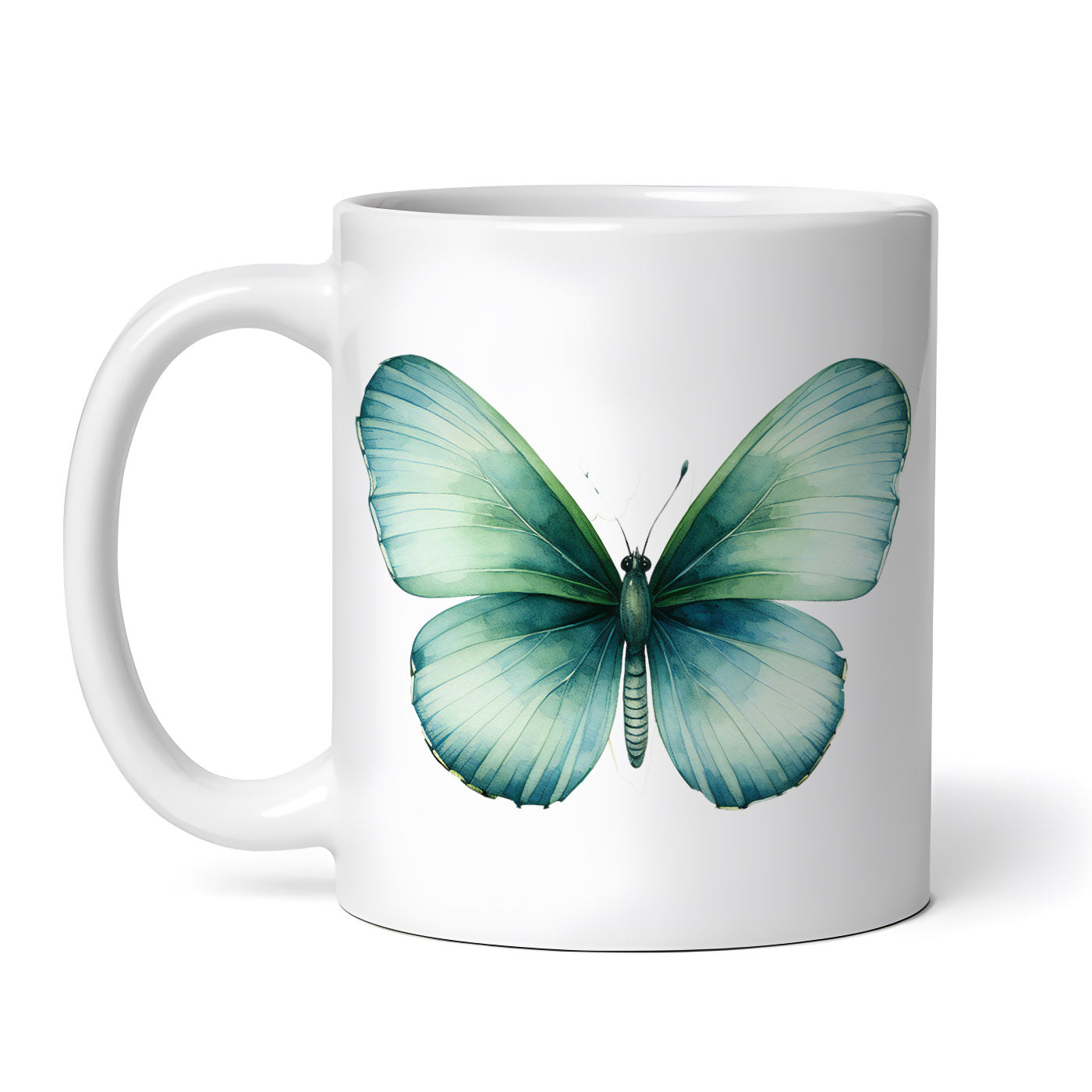 Cana ceramica, Fluture verde, NO2524, 330 ml, Multicolor