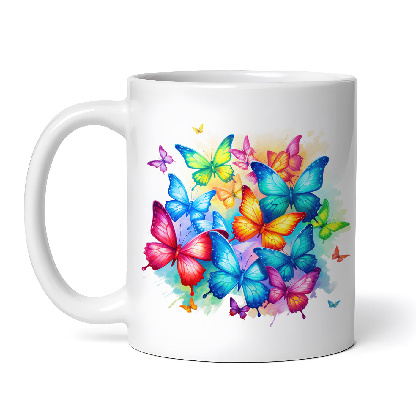 Cana ceramica, Fluturi curcubeu Aglomeratie, NO4783, 330 ml, Multicolor