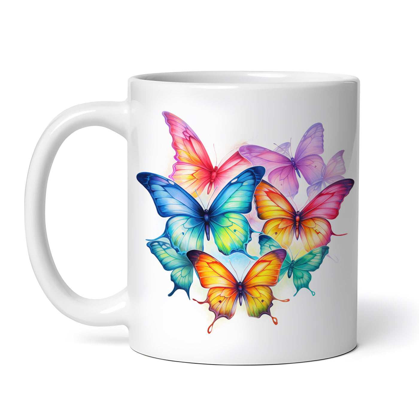 Cana ceramica, Fluturi curcubeu Alegerea, NO2032, 330 ml, Multicolor