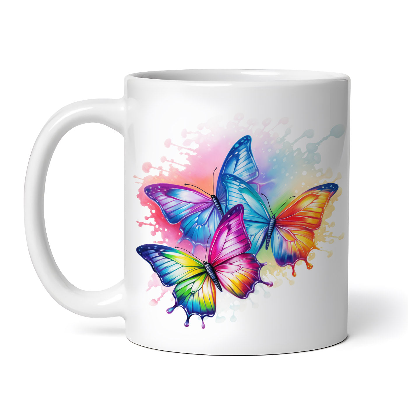 Cana ceramica, Fluturi curcubeu Sentimente, NO1470, 330 ml, Multicolor