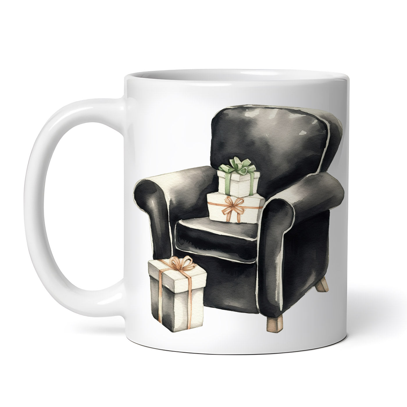 Cana ceramica, Fotoliu cu cadouri de Craciun, NO5710, 330 ml, Multicolor