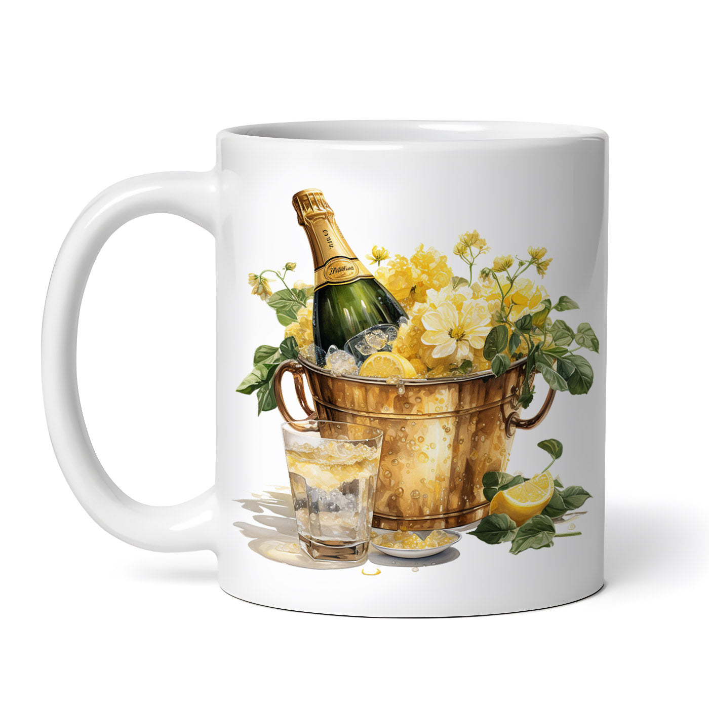 Cana ceramica, Frapiera cu flori si sampanie, NO2710, 330 ml, Multicolor