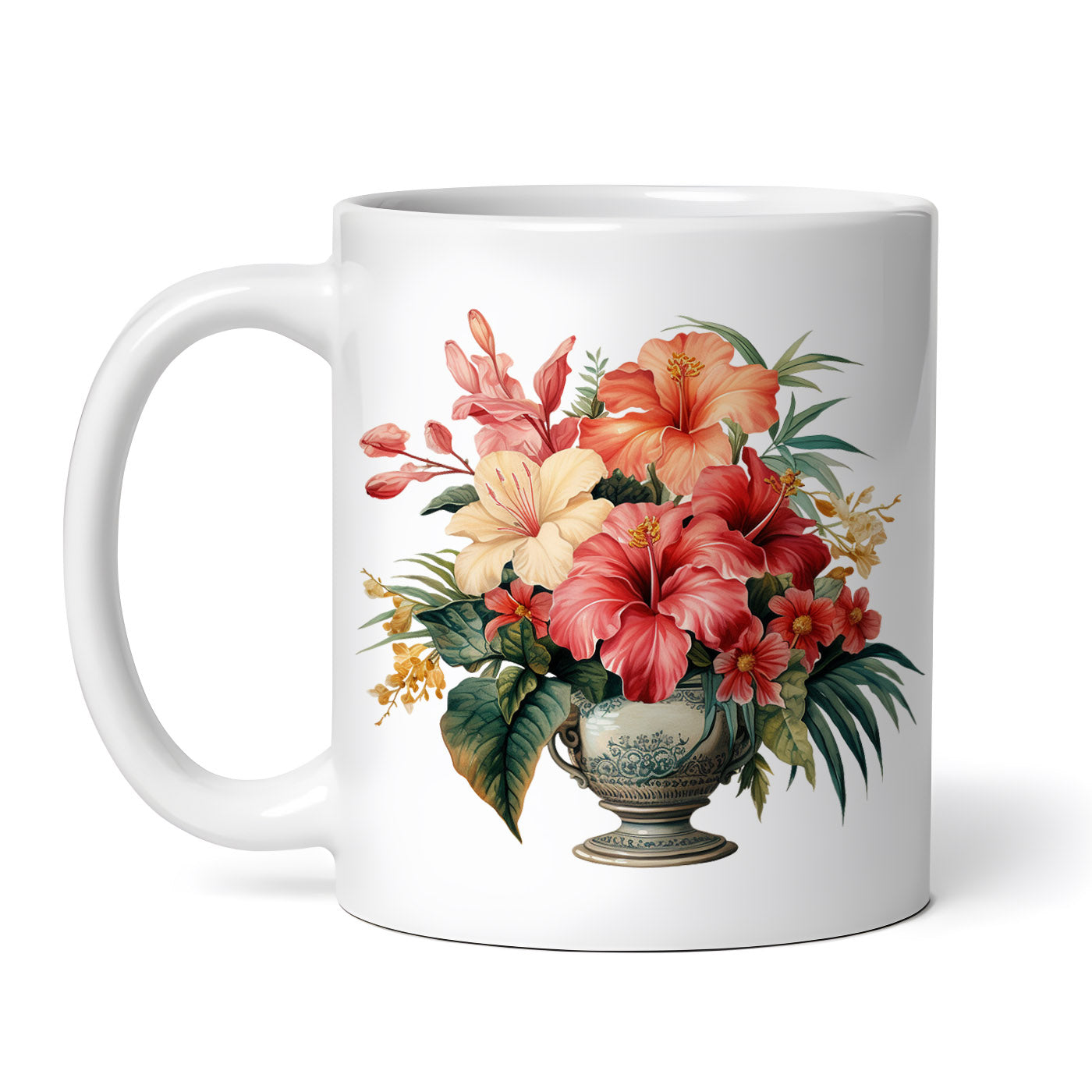 Cana ceramica, Ghiveci cu hibiscus, NO214, 330 ml, Multicolor