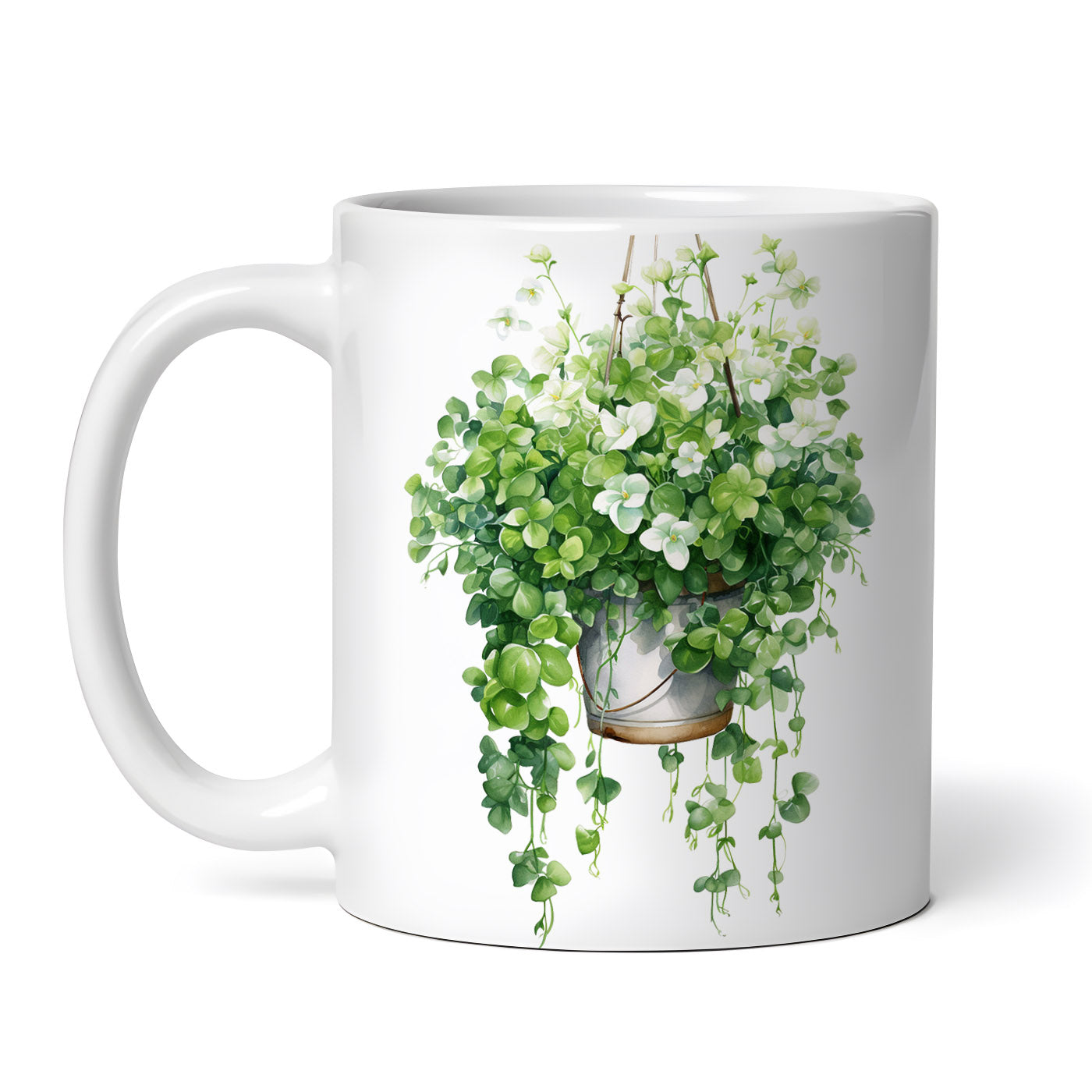 Cana ceramica, Ghiveci suspendat cu flori albe, NO015, 330 ml, Multicolor