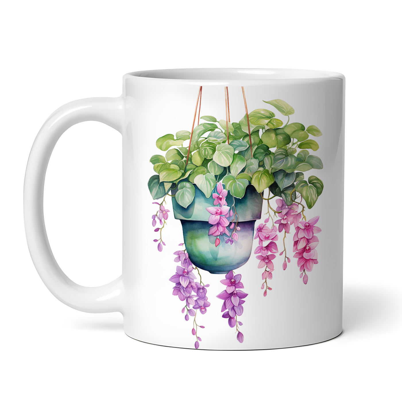 Cana ceramica, Ghiveci suspendat cu orhidee roz, NO2607, 330 ml, Multicolor