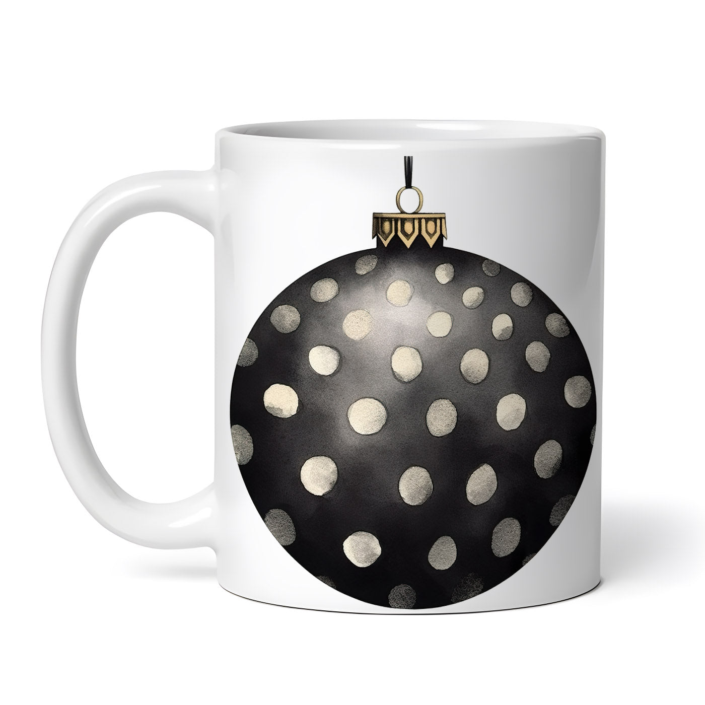 Cana ceramica, Glob negru cu buline, NO5254, 330 ml, Multicolor