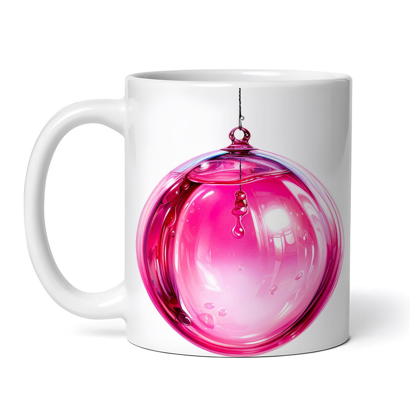 Cana ceramica, Glob roz de brad, NO584, 330 ml, Multicolor