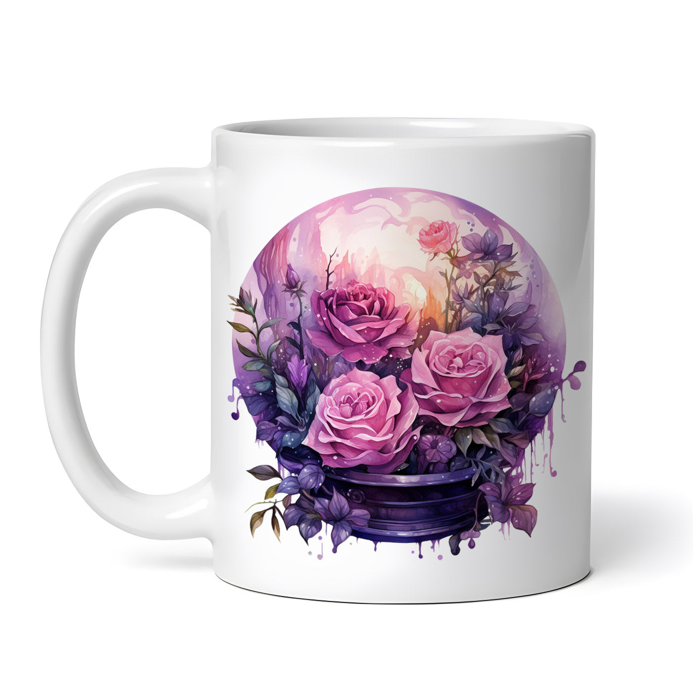 Cana ceramica, Globul de cristal Apusul cu flori, NO6321, 330 ml, Multicolor