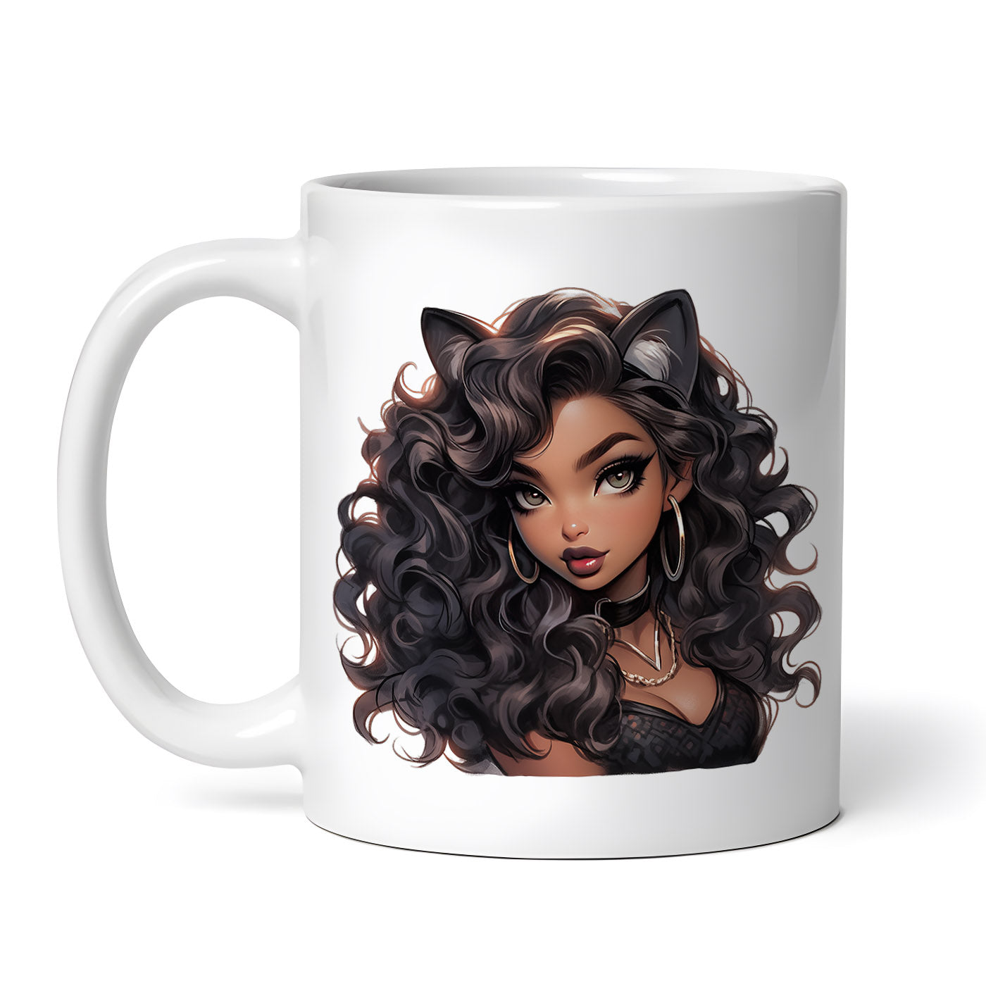 Cana ceramica, Halloween Fata cu urechi de pisica, NO2393, 330 ml, Multicolor