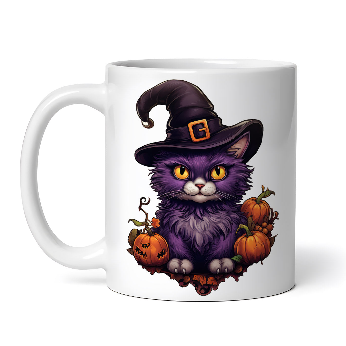 Cana ceramica, Halloween Pisica mov cu palarie de vrajitoare, NO2977, 330 ml, Multicolor