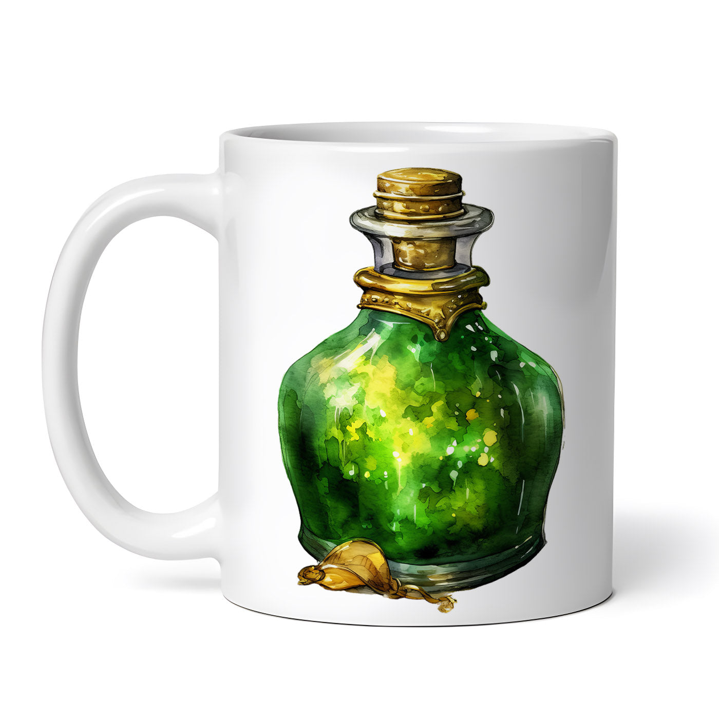 Cana ceramica, Halloween Sticla cu otrava esmerald, NO6384, 330 ml, Multicolor