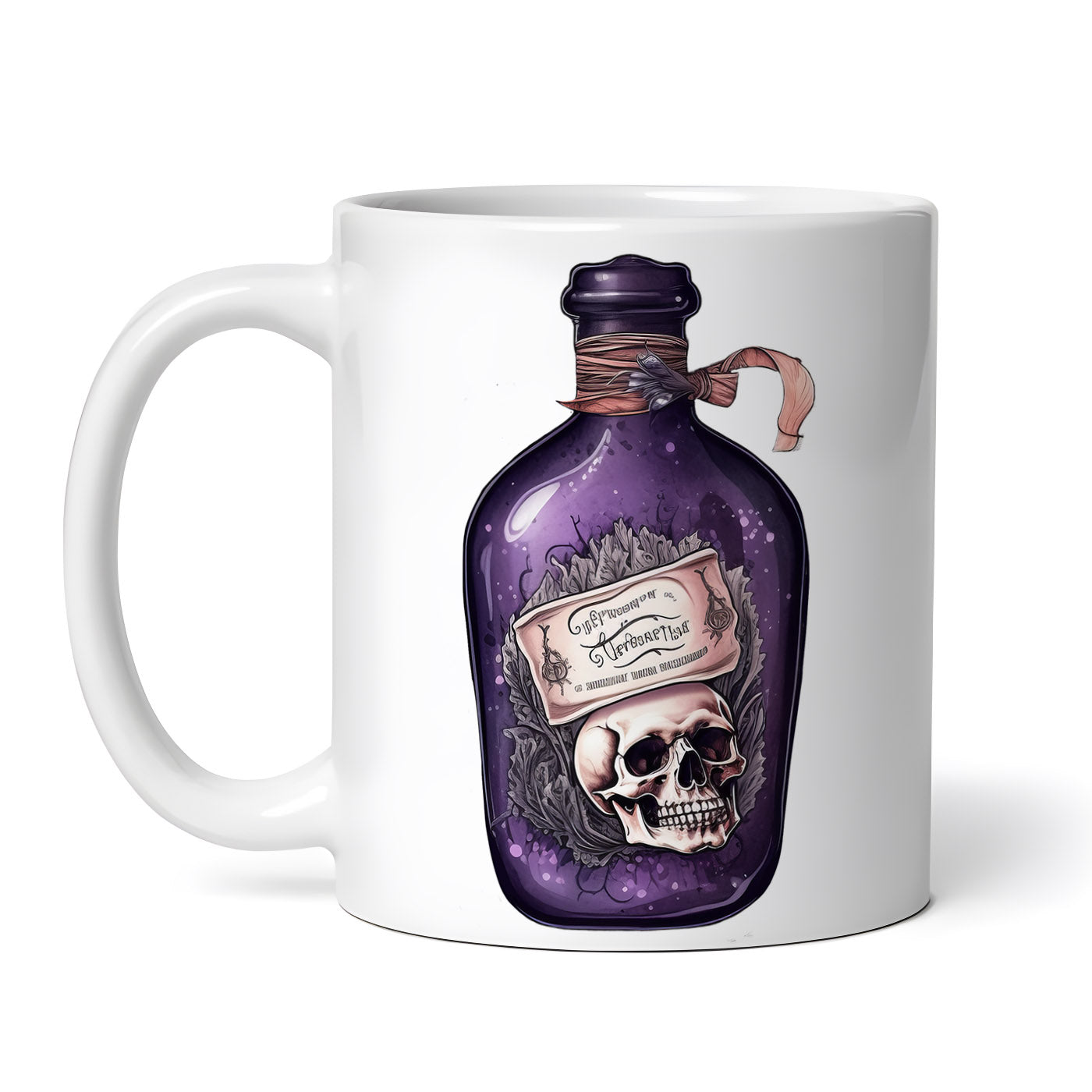 Cana ceramica, Halloween Sticla cu potiune magica mov cu eticheta cu craniu, NO3049, 330 ml, Multicolor