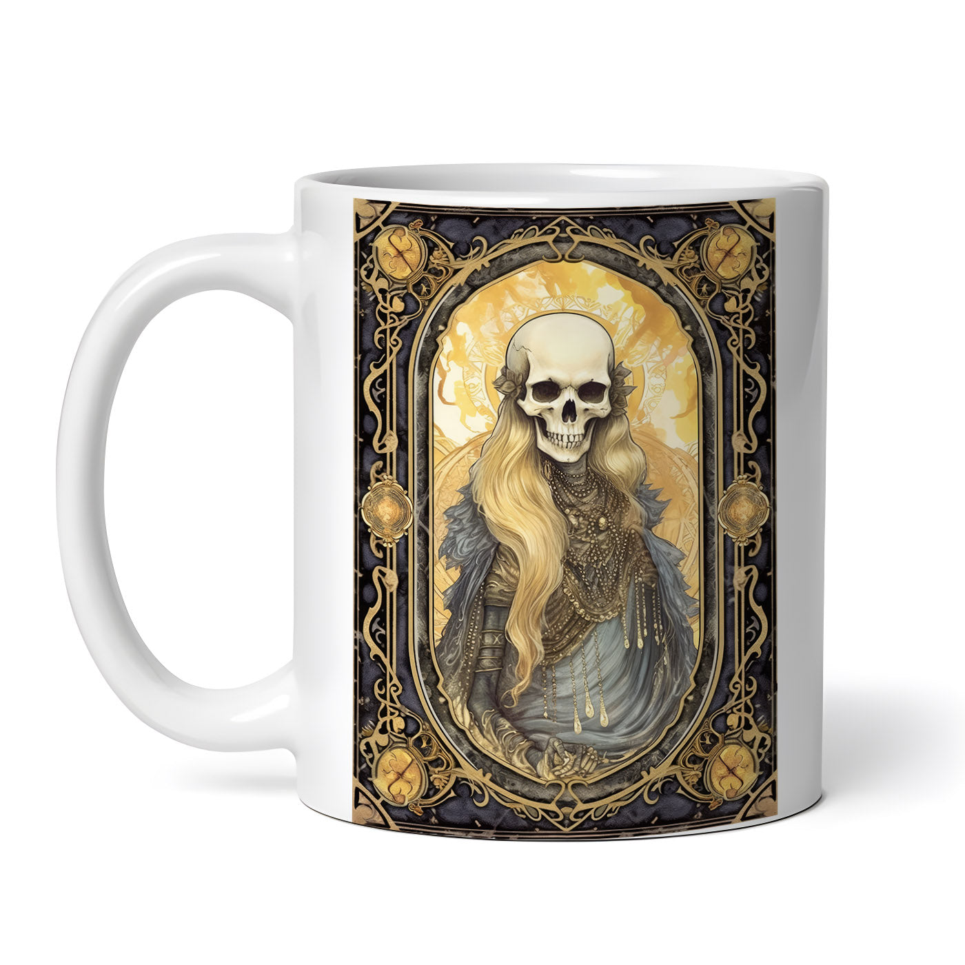Cana ceramica, Halloween Tarot Sceletul cu aur, NO5050, 330 ml, Multicolor