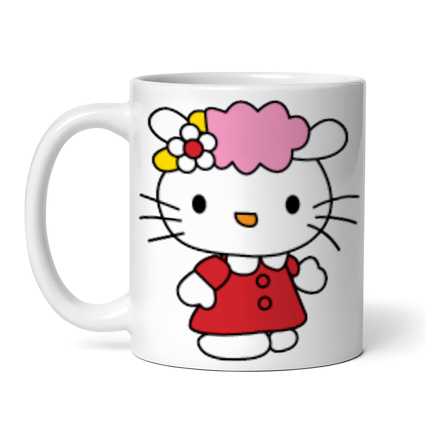 Cana ceramica, Hello Kitty cu flori in par, NO10438, 330 ml, Multicolor